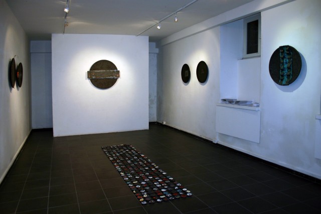 Per questa esposizione Elettra Cipriani presenta una serie di lavori in ceramica realizzati specificatamente. Sono piatti di dimensioni differenti, si parte dal diametro di circa 1 metro e si arriva a quello di pochi centimetri, per creare un’istallazione di grande fascino, in cui oggetti che quotidianamente contrappuntano lo svolgimento della vita di ognuno, si mostrano al pubblico con una luce diversa. Contaminazioni di terra e fuoco